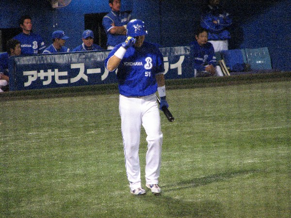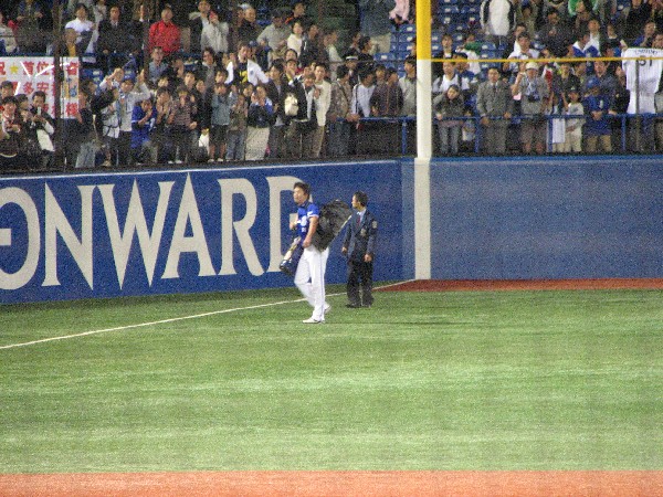 試合終了後にレフトスタンドの横浜ファンに別れを告げグラウンドを後にする尚典。