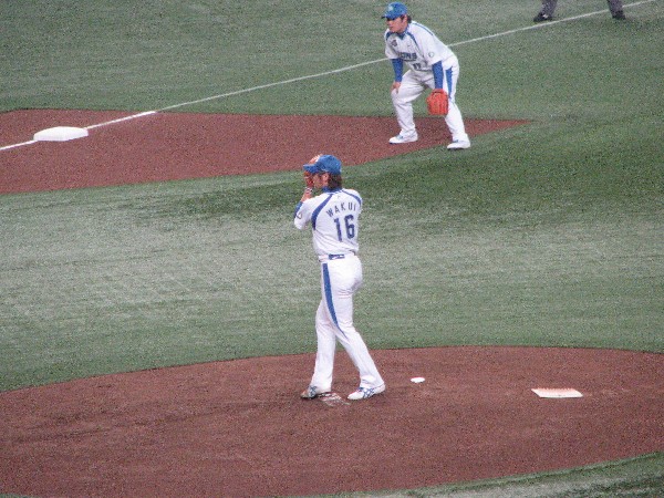 巨人の三番小笠原と対戦する涌井。三振に斬って取り1回表を三者凡退と上々の立ち上がり。