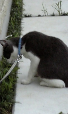 | 紐に繋がれた飼い猫 |