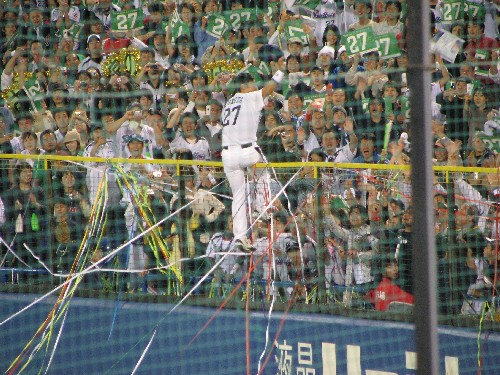 古田が消えても、なかなか帰ろうとしないファン。皆、この日の余韻に酔いしれていた。 |