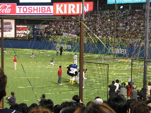 凄まじい量の紙テープが投げ込まれていた。 |
