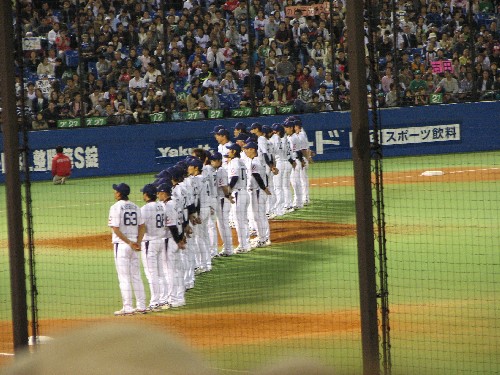 引退セレモニーで整列するスワローズナイン。 |