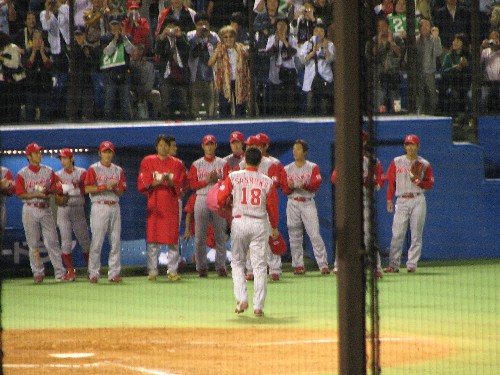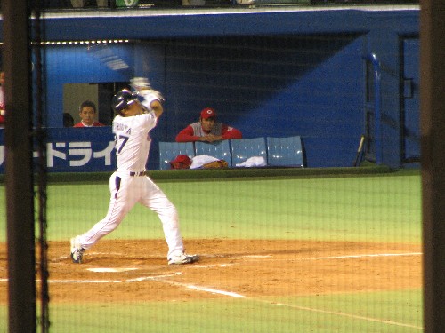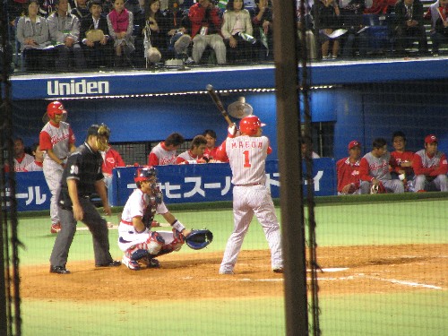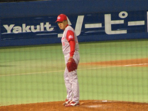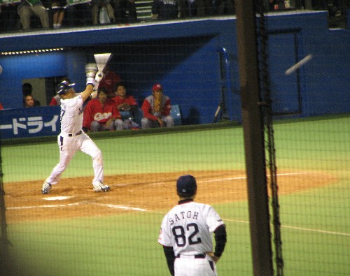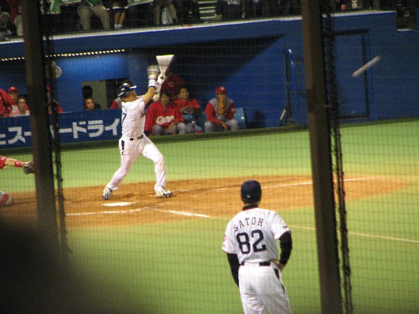 佐々岡は打ちやすいボールを投げてくれたが、遅すぎてタイミングが合わずにショートゴロに倒れる。 |