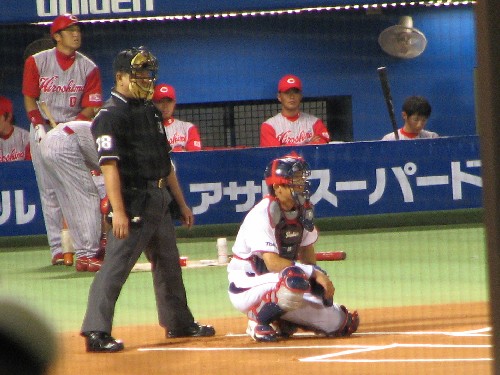 主審の佐々木審判は、珍プレーで清原軍団にストライクコールを真似され困っていた審判。 |