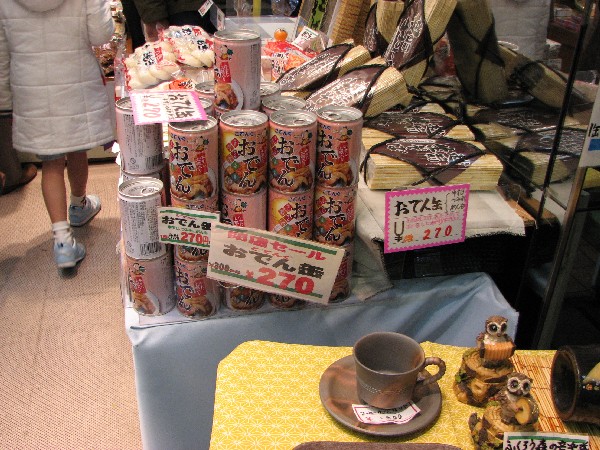 | 2006年12月31日の最終営業日に秋葉原名物の「おでん缶」のセールをしていたが、そんなに安くはなっていなかった。 |