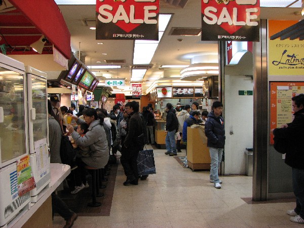 | 2006年12月23日、アキハバラデパート1階の食堂街。丼物やお好み焼き等の手軽な店中心だった。 |